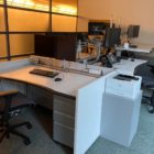 These beautiful sit/stand trading desks manufactured by SBFI incorporate great features such as industrial cable management, technology rails for mounting of monitors and base enclosures for the concealment of equipment Each station is equipped with high impact front nosing and electronic controls to raise and lower the units.