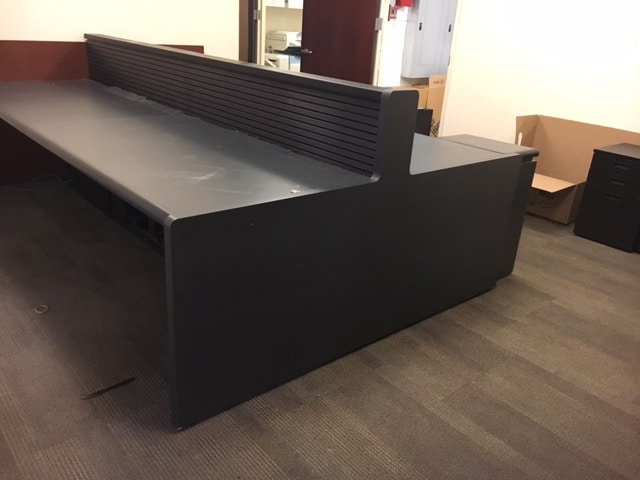 Used Innovant trading desk with monitor slatwall and single end pannel. Built by a leading technical furniture manufacturer, these trading desks are a versatile option that fit well into any trading floor environment.