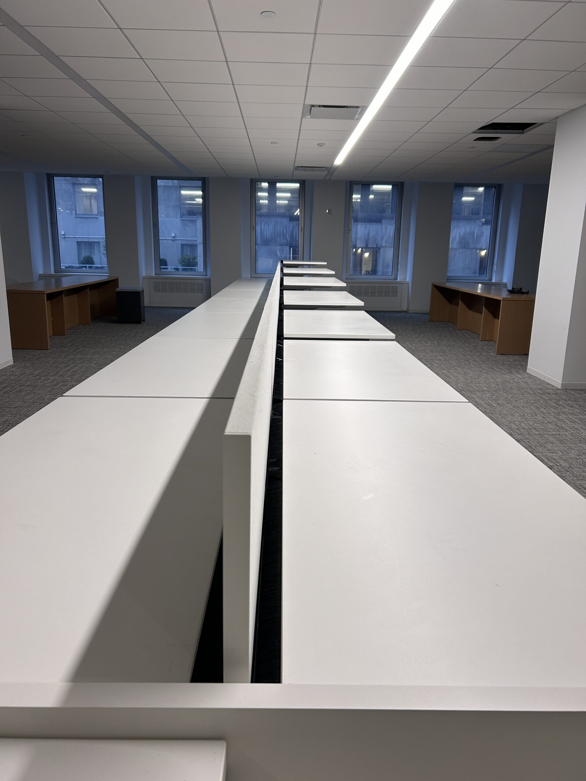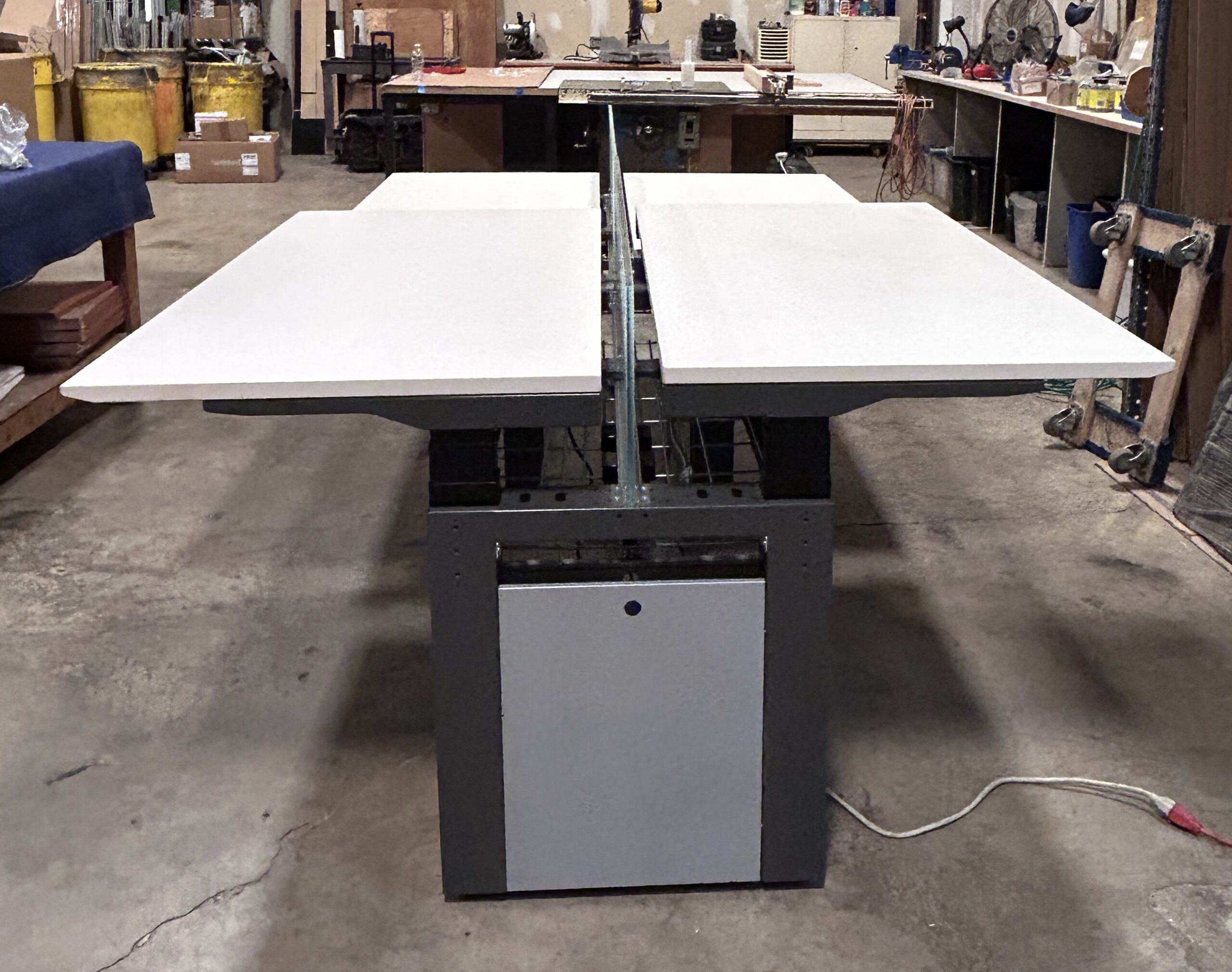 Do you want some of the features of a trading desk like superior cable management and electronic height adjustability but do not have the need for the additional cost of a technology rail.  Well then these units manufactured by Innovant are just up your alley.  With design features including a 60″ white surface, above surface fabric privacy panel, unit to unit modular electric and an open connection cable raceway system, these units are guaranteed to steel the show!