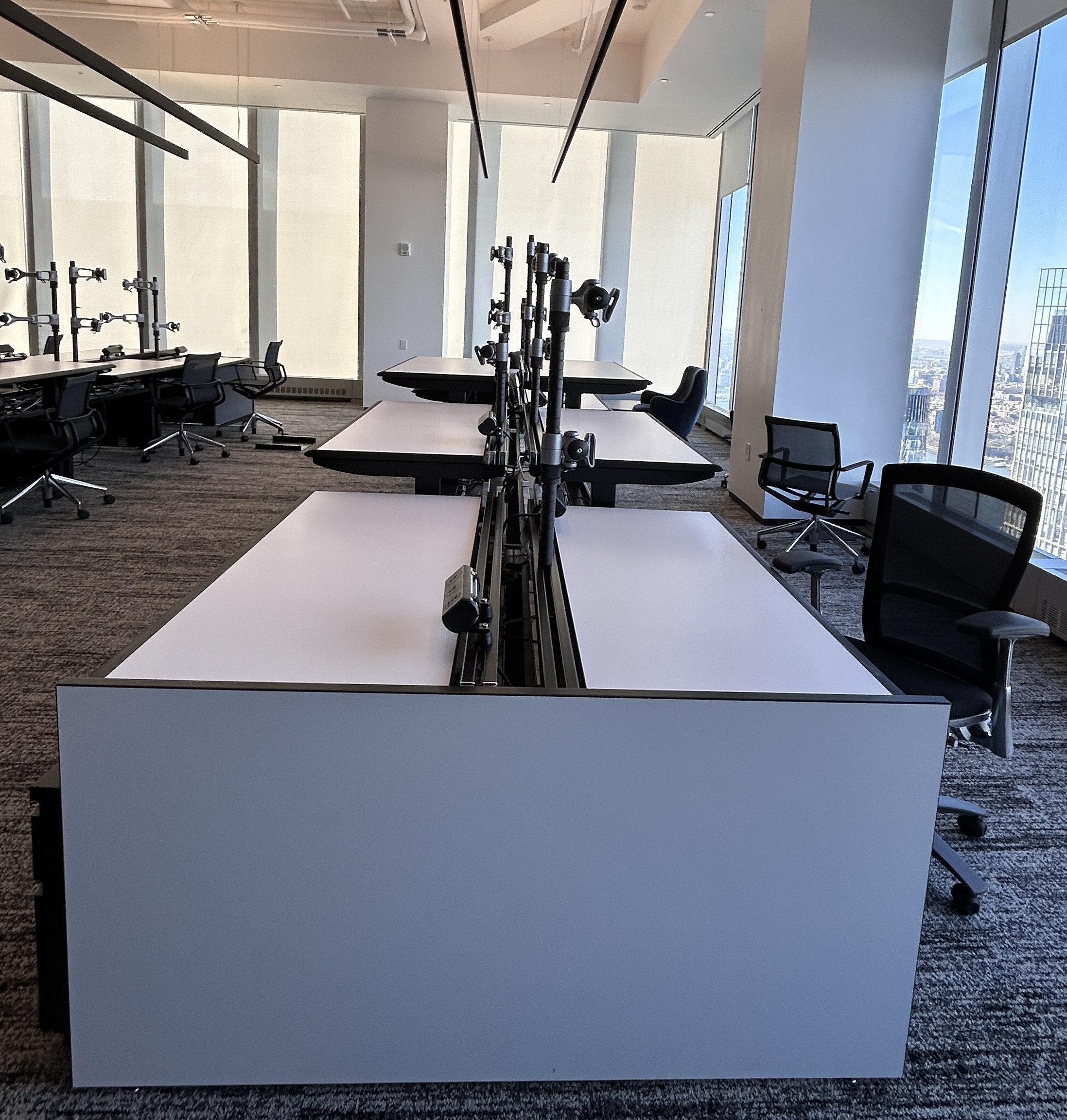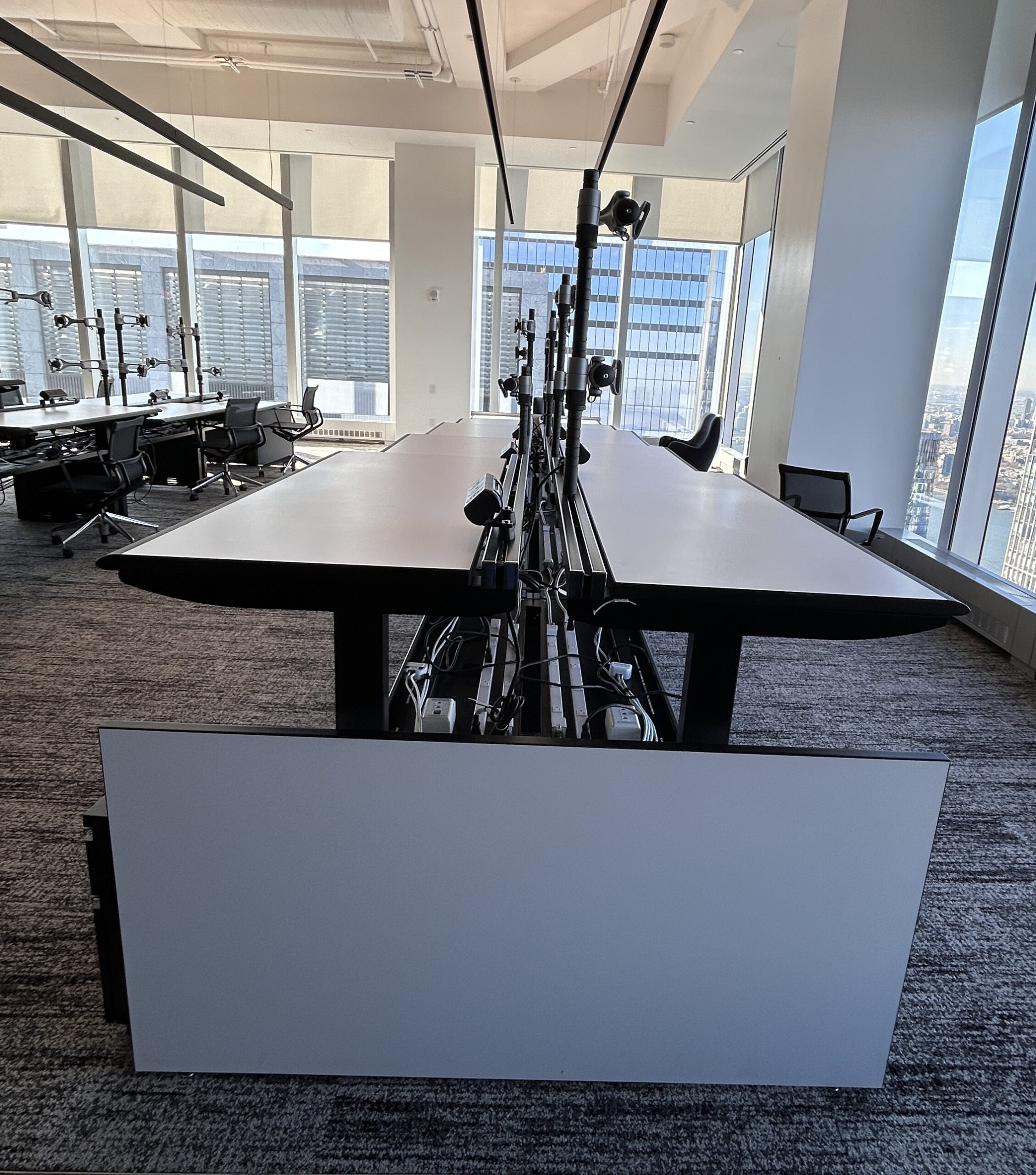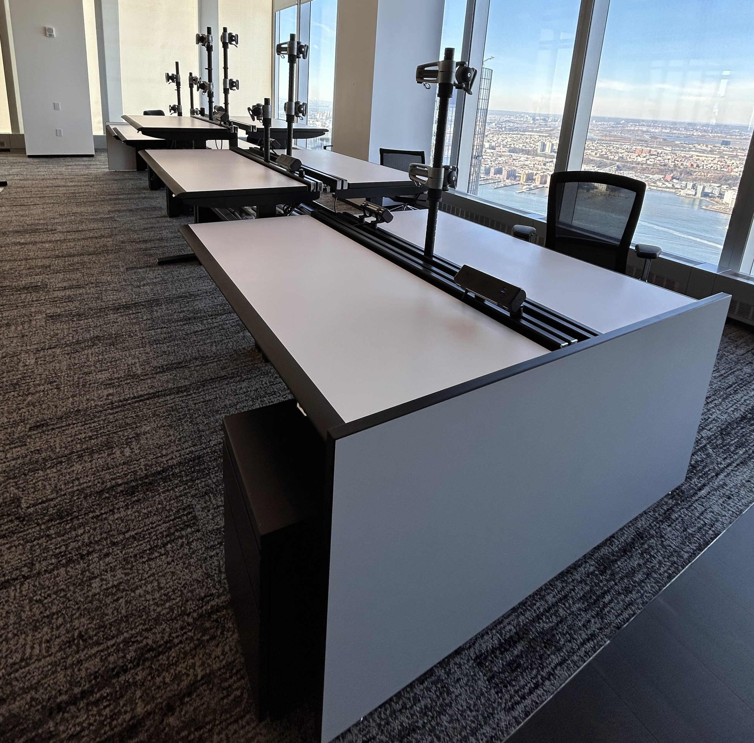 These desks are ideal for trading floors, corporate offices, or any workspace requiring flexibility and clean cable organization.