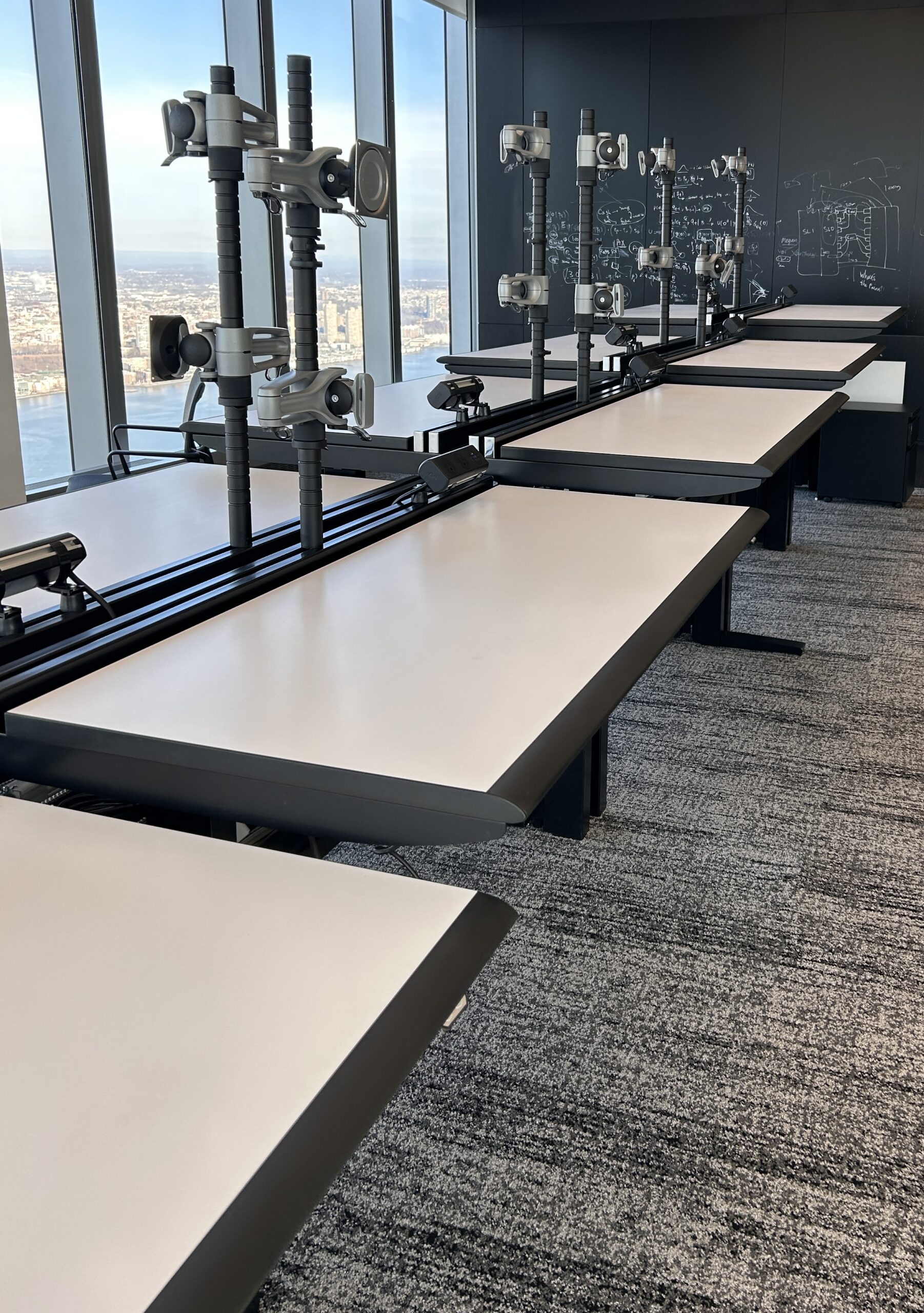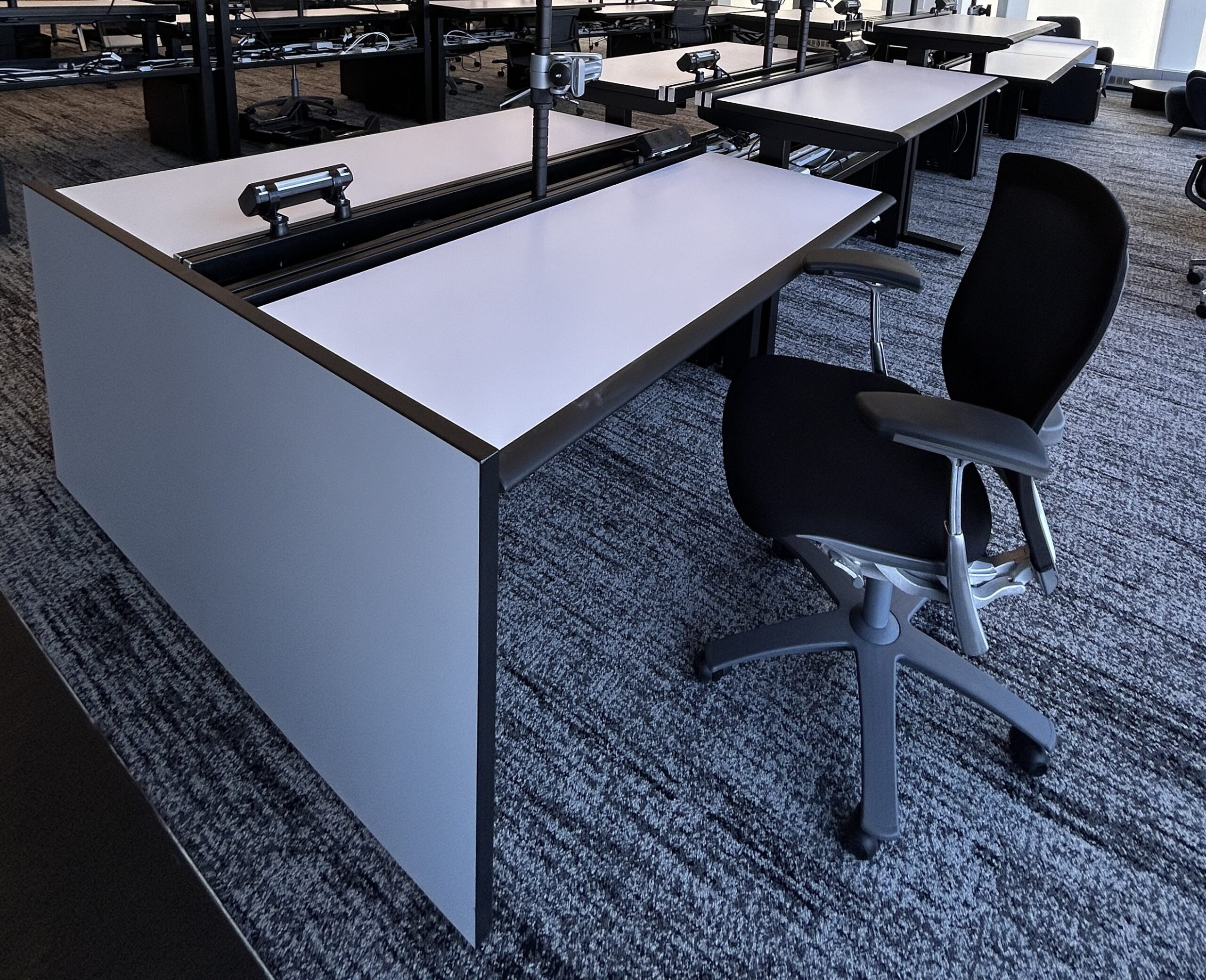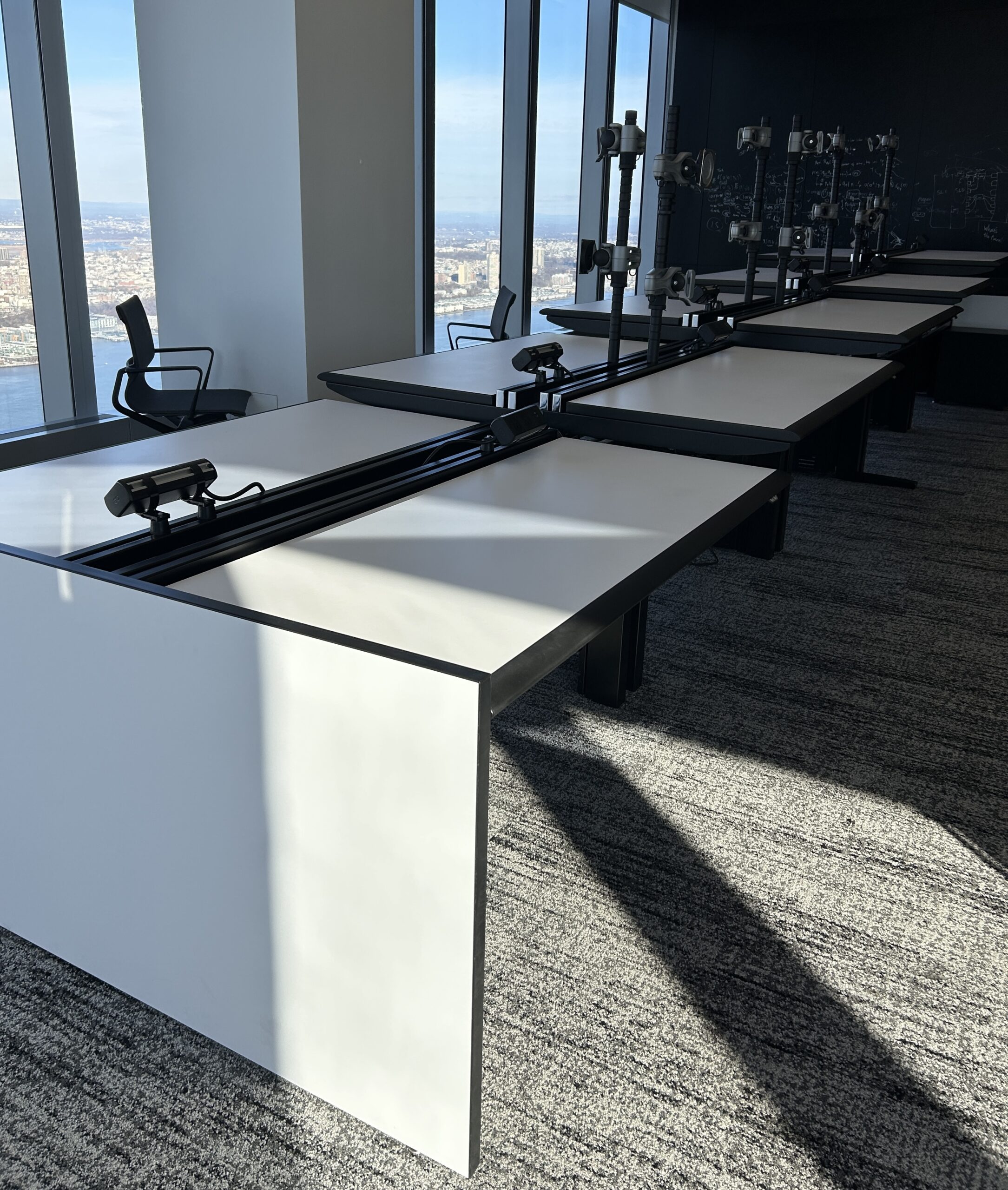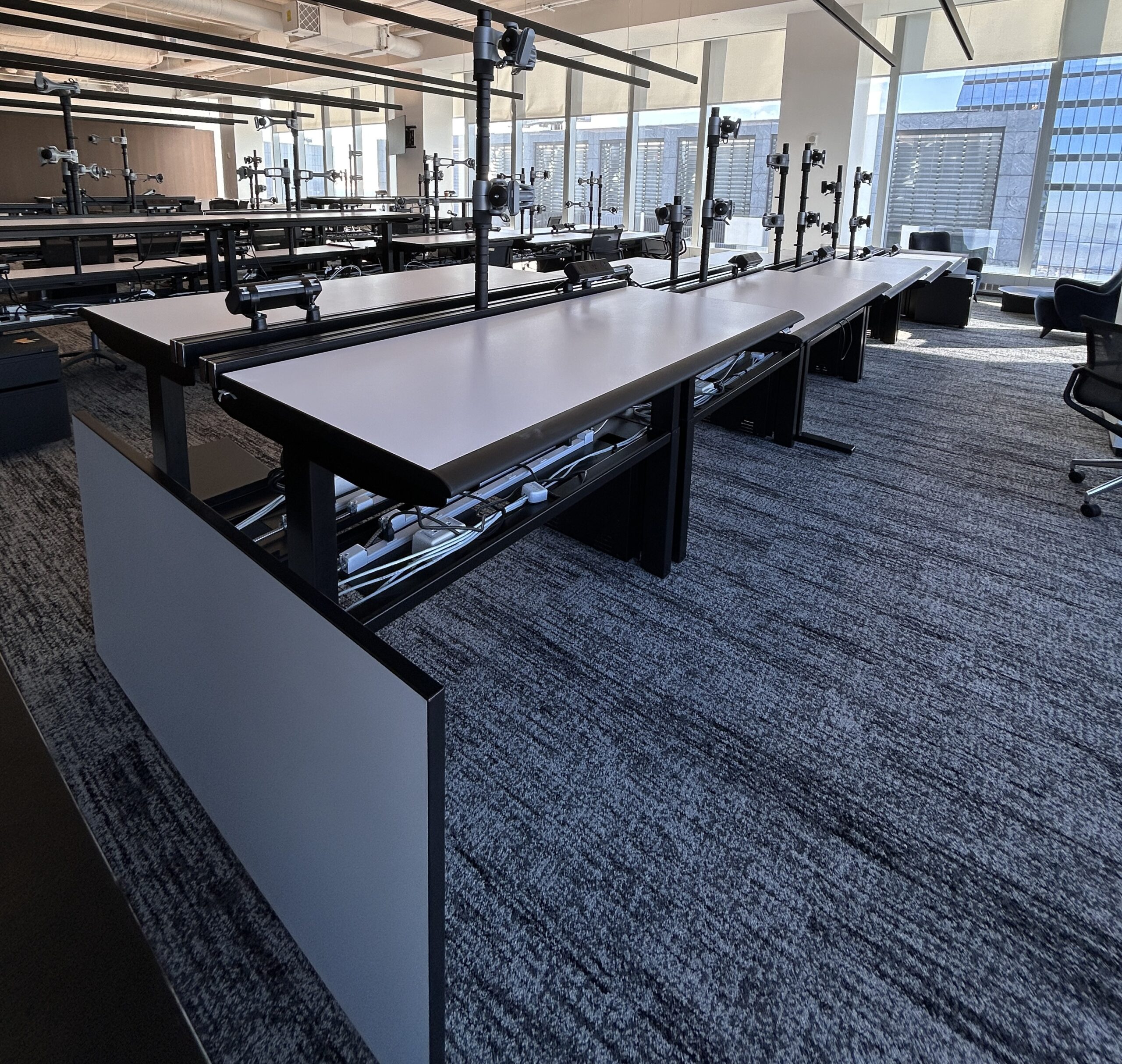 These desks are ideal for trading floors, corporate offices, or any workspace requiring flexibility and clean cable organization.