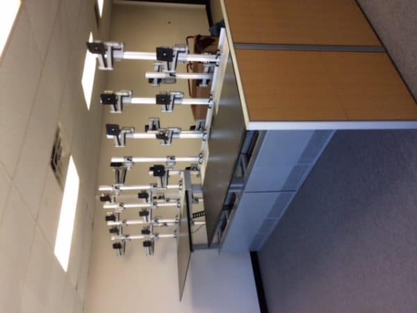 Our innovative monitor arms are an excellent solution for streamlining your workstation layout, making it simple to place, adjust and use display arrays of any size. These high-quality monitor arms are ultra durable and built to last, which is why we’re happy to offer a selection of used pieces. Incorporating used monitor arms into your trading desks or control room workstations saves money and lessens your environmental impact by keeping fully functional pieces from ending up in the landfill.