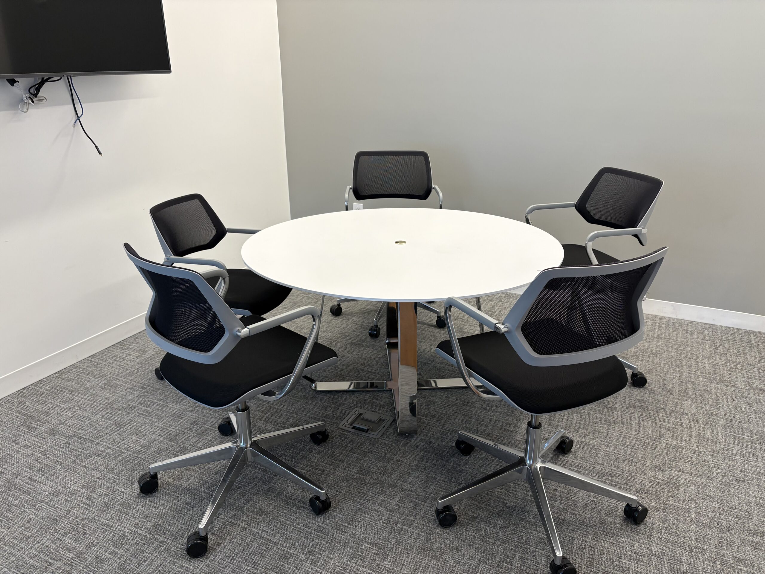 White Laminate Round Meeting Tables – Chrome Base – 60″ & 54″ Options