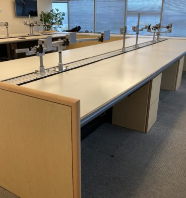- Saving money and time – purchasing used trading desks can cost up to 80% less than buying new, and it saves you time, too. Lead time from beginning to completion of your project can take as little as two weeks when we’re working with pre-owned furniture!