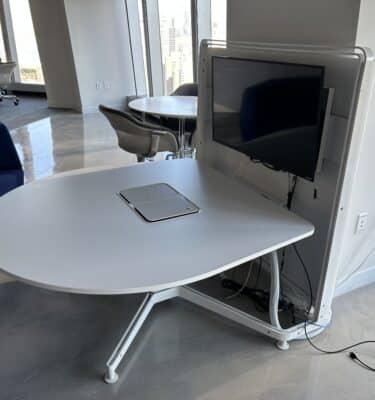 - Customizable details – when you see what we can do with personalization, you’d never believe that our furniture was pre-owned. We can add branding, replace end panels and make modifications to enhance functionality and better suit your technology needs.