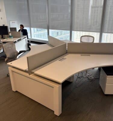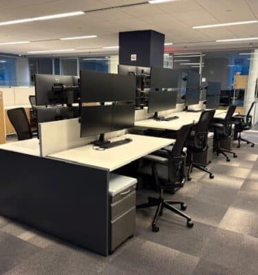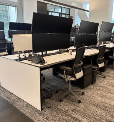 Getting a new business off the ground comes with an array of expenses and obstacles. Furnishing a new office space can be one of the highest costs and biggest headaches, but that doesn’t need to be the case. With Saraval Industries, finding affordable used desks for sale is easy. Saraval Industries sells high-quality used trading desk furniture to offer our clients a faster, easier and more affordable alternative to purchasing brand-new furniture for your firm. Learn more about what a trading desk is here.